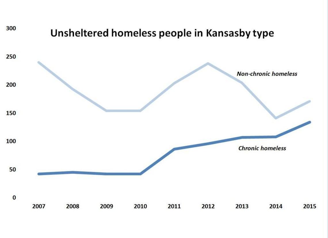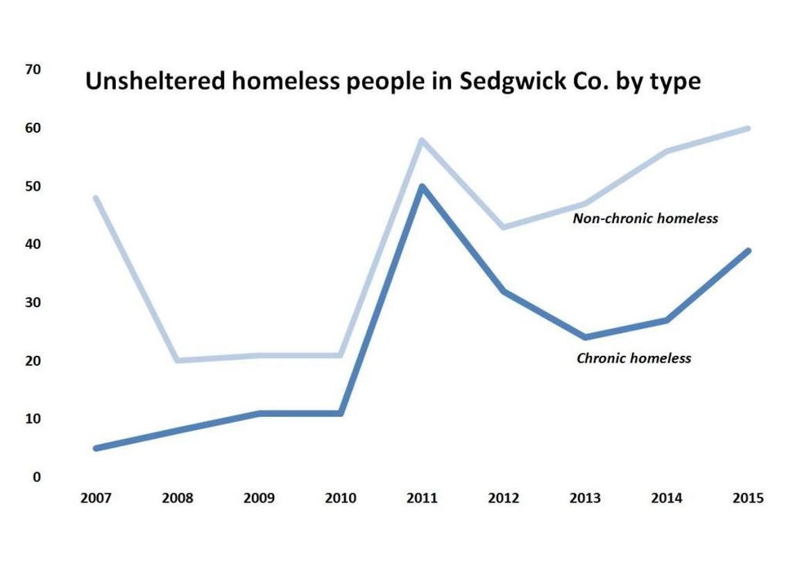 But in Wichita the numbers of both chronic and temporary homeless people without shelter have been going up since 2008.