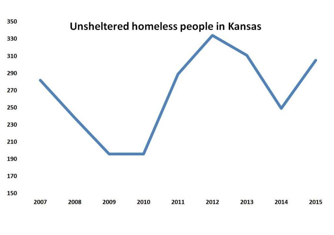 Homelessness has increased 22 percent in Kansas since 2007, putting it in the bottom third of states over that time. It is moving in the opposite direction of homelessness nationally, which has fallen by 13 percent.
