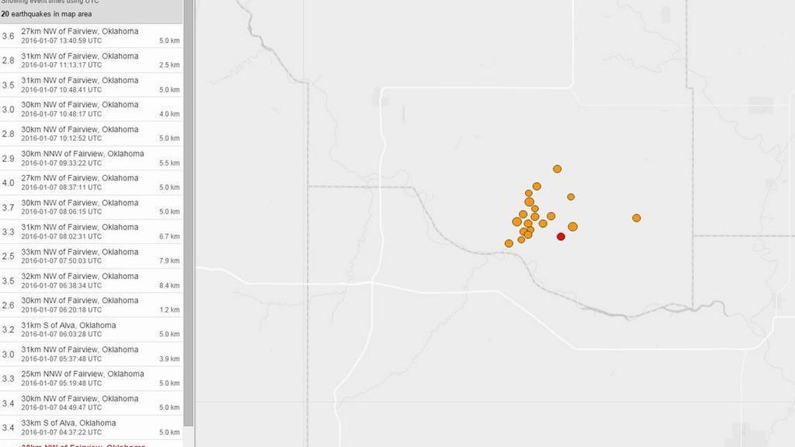 This story was originally published January 7, 2016 at 8:04 AM with the headline "Multiple tremors follow back-to-back earthquakes in Oklahoma."