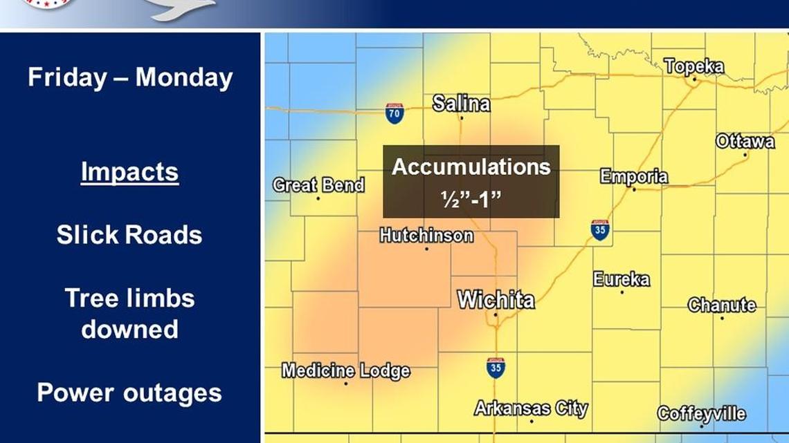If temperatures climb above freezing Saturday afternoon or evening, he said, that will spare Wichita a major ice event. But parts of central and western Kansas could see significant icing, with the power outages and travel dangers that are common in such conditions.