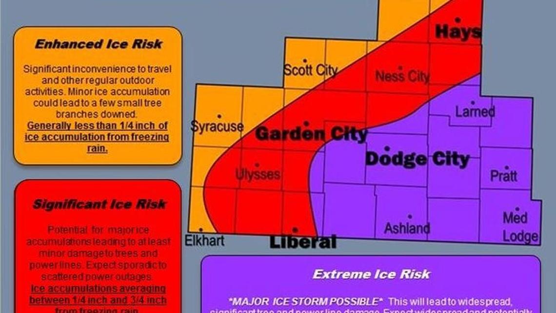 Parts of western and central Kansas could see .75 of an inch or more of ice accumulation, according to the weather service.