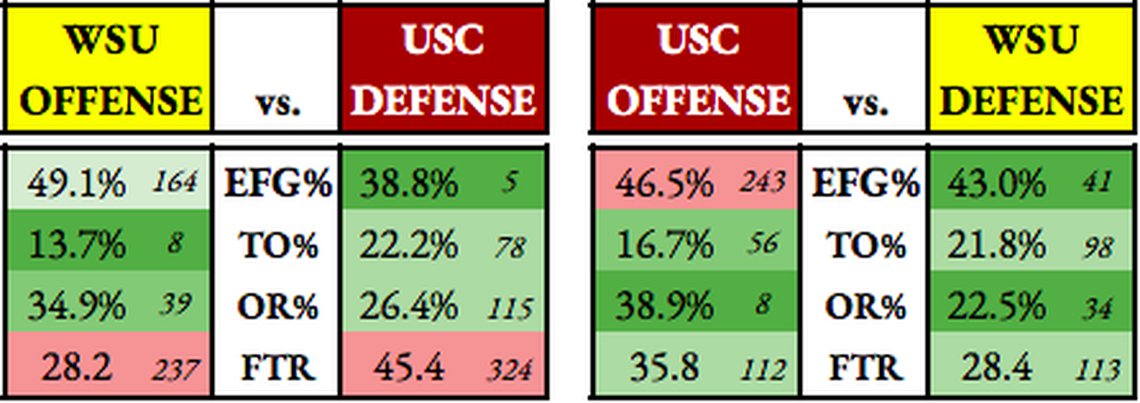 Not only will WSU’s rotation at center be challenged to keep USC off the offensive glass, but this might be the most important game of Trey Wade’s brief career at WSU. At 6-6, he’s been able to get by so far this season on his high basketball intelligence and correct positioning. But against South Carolina, he’s going to be going up against much bigger bodies. How well he can defend and box out could go a long way in determing WSU’s success.