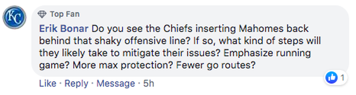 Injuries remain a concern. Even before Mahomes’ injury the offense had been held to a total of 37 points in two games. Maybe teams have seen something in the Chiefs’ protections to exploit.