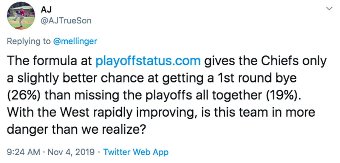 The NFL is the least predictable of our major sports leagues. The Chiefs appear in great position at the moment. Appearances can change in a blink.