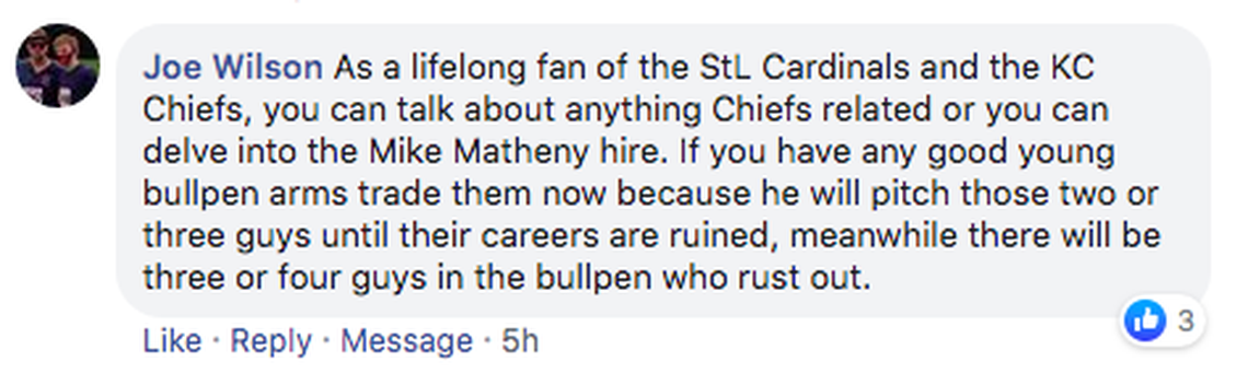 I’m fresh out of fresh Matheny takes, is what I’m trying to say, but I do find myself with two main thoughts.