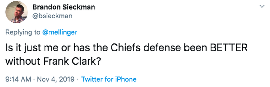 Clark is a noticeable* run stopper and if he’d been playing through a neck injury, that could explain the lack of production against the pass.