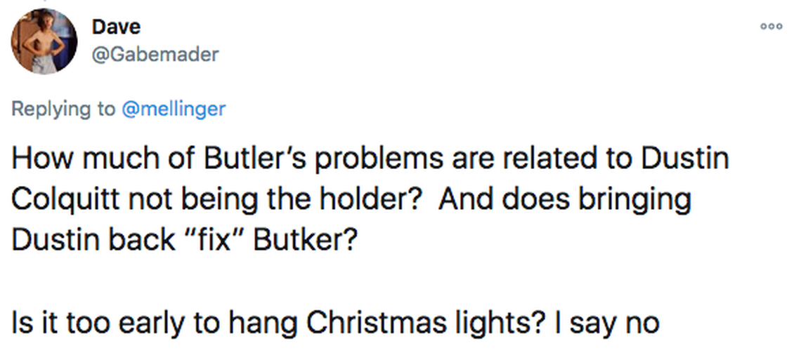 This is an example of a spot where our understanding is limited without locker room access. In normal times, we’d be talking to Butker and Townsend every week. In these unprecedented times*, we’re essentially limited to Toub once a week.