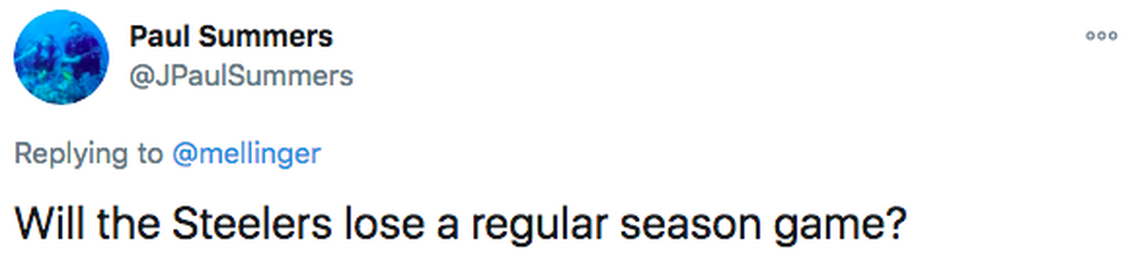 I’m not saying that’s how it will go for the Steelers. What I’m saying is they’ll lose at least a game, and if I was doing the guessing I’d say two or three.