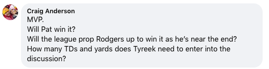 You asked about Tyreek Hill, and I’m not ignoring that. I just think that with how the NFL is played in 2020 a quarterback is going to be the MVP.