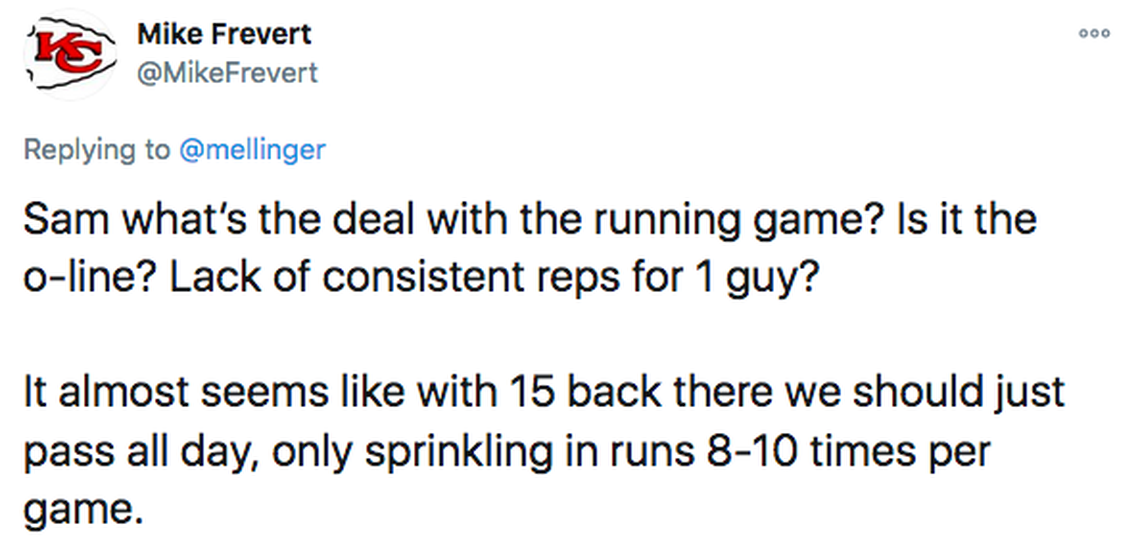 The Chiefs are not a run team. They haven’t been since Andy Reid was hired eight seasons ago, and they will not be as long as Patrick Mahomes remains employed.