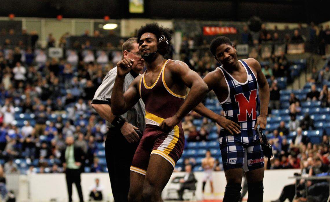 He is quiet, hard to break, composed under pressure. Saunders is one of three Wichita Public Schools students to reach a wrestling state title bout. Wichita Northwest senior heavyweight Marcus Hicks is another, and South junior Malachi Karibo (in the 160-pound class) is the third. He and Hicks were the two winners.