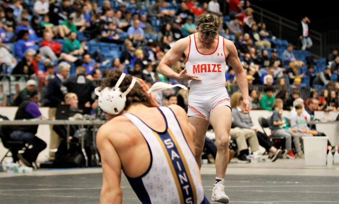 Troy Fisher, who is committed to wrestle at Northwestern, wrapped up his high school career with a second straight individual title at 170 pounds. He beat Blue Valley Southwest junior Seth Nitzel by a 20-5 technical fall. Fisher said it was the perfect way to go out with his brothers next to him.