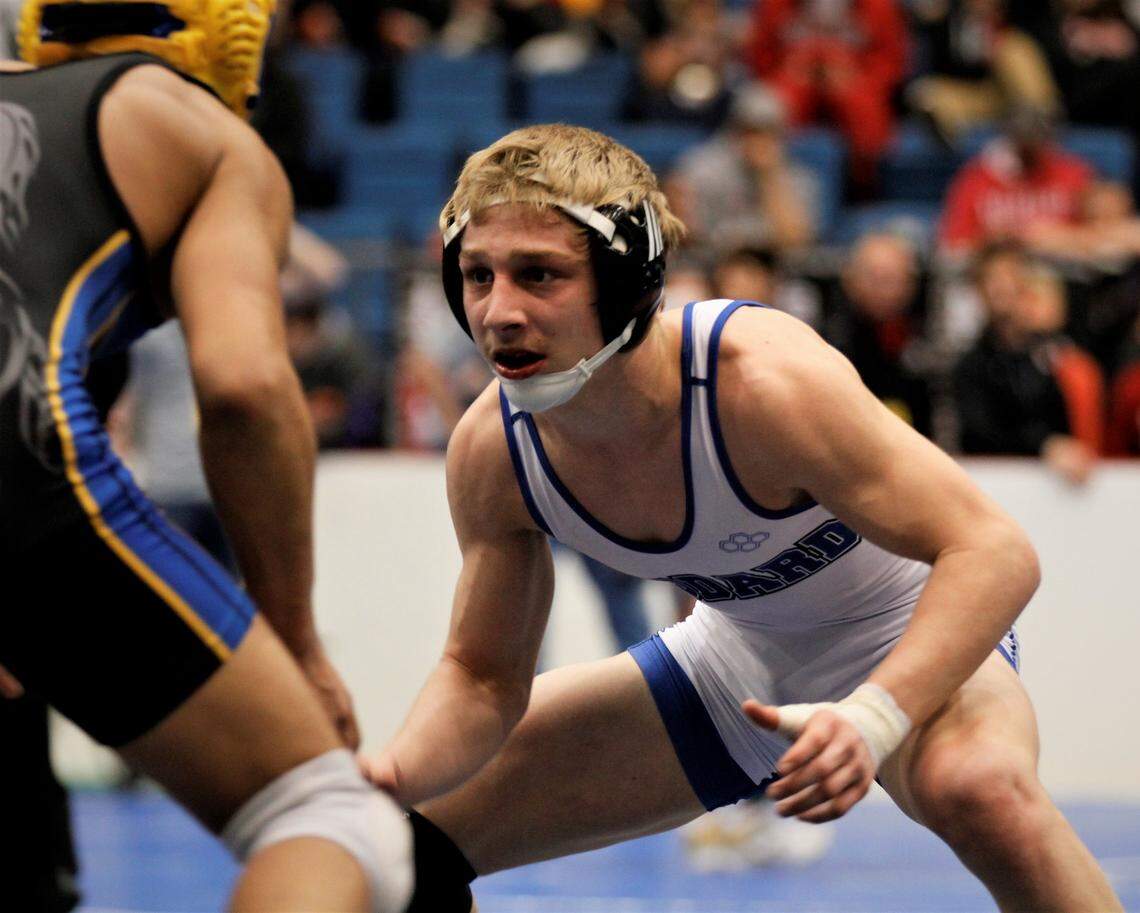 Radke’s long, bushy brown hair is hard to miss, and his 160-pound Class 5A bout was, too. He beat Goddard junior Trevor Dopps 3-1 by getting a takedown with about two seconds left.