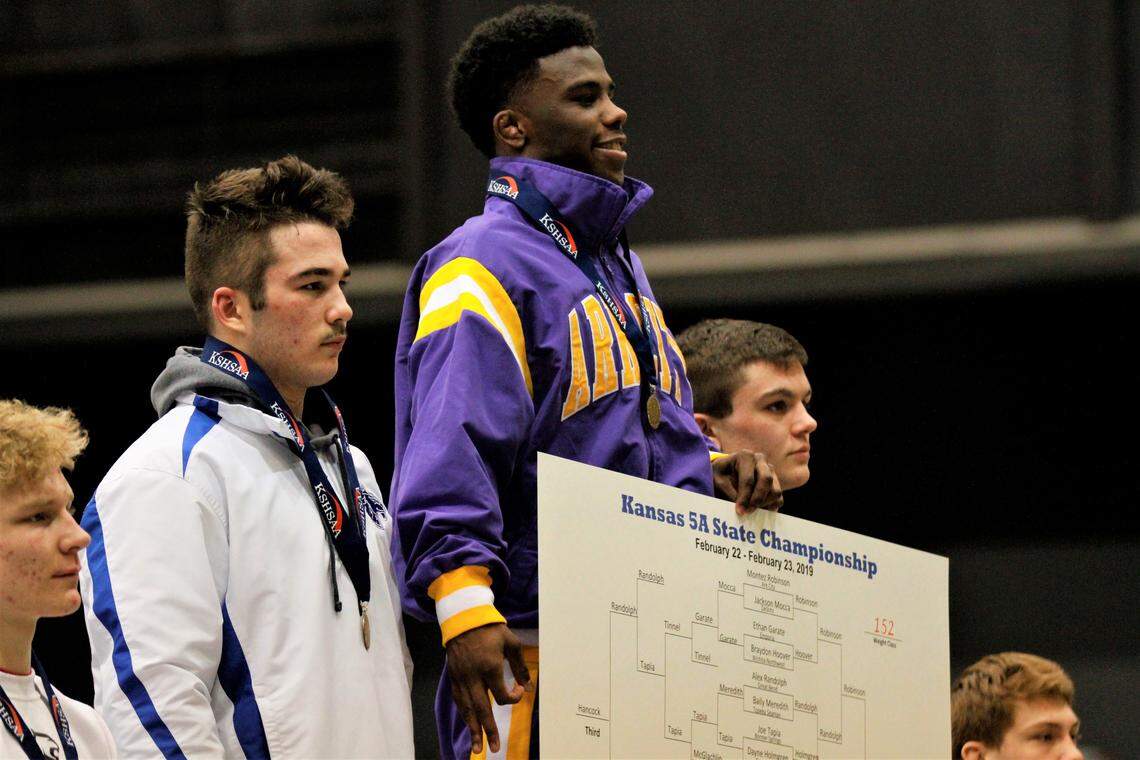 He was one of two Bulldogs to win state championships, joining fellow senior Gabe Buckbee at 132 pounds. Together, they helped Ark City to a second-place finish in Class 5A with eight state-placers.